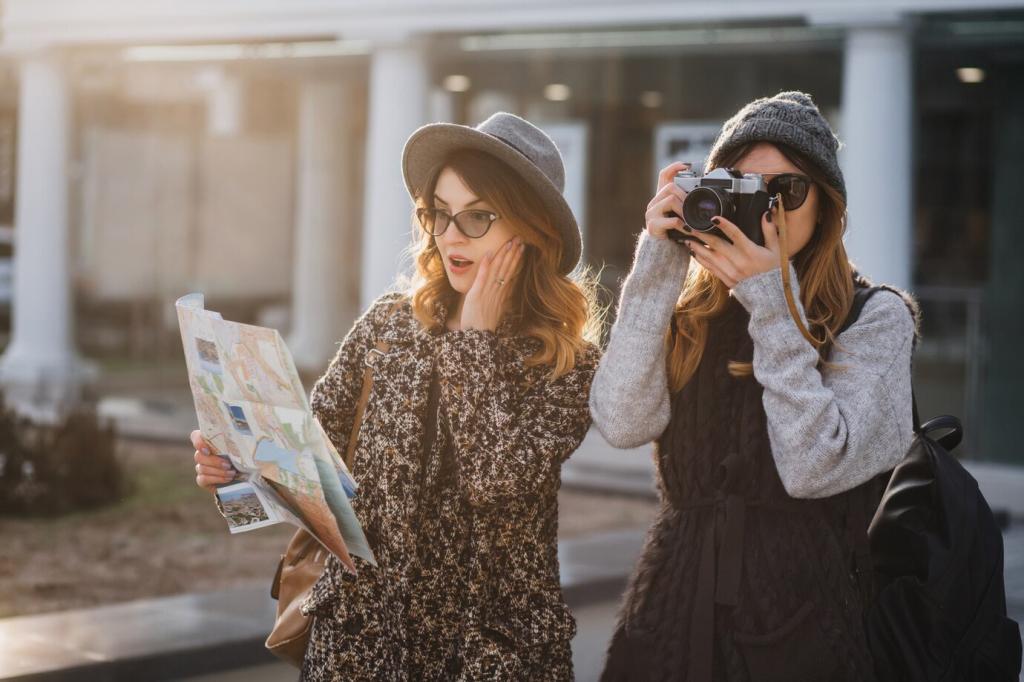 Eine kompakte Kamera mit lichtstarker Festbrennweite spart Gewicht und fällt kaum auf. Ein kleines Reisestativ oder Bohnensack stabilisiert, ohne zu stören. Zusätzliche Akkus, eine unauffällige Tasche und dezente Kleidung unterstützen konzentriertes Arbeiten ohne Aufmerksamkeit zu provozieren.